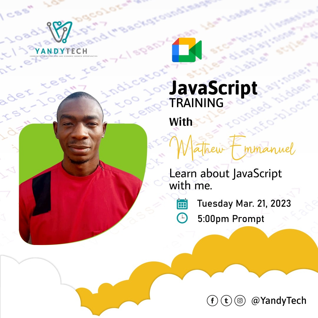 Join Mathew Emmanuel, a valuable member of YandyTech Community, for the monthly events series to learn how to bridge the gap with JavaScript Essentials Training .
